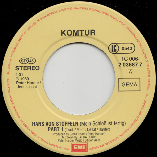 Vinyl / Komtur - Hans Von Stoffeln (Mein Schloss Ist Fertig)