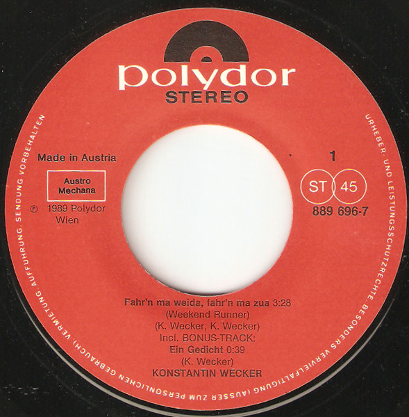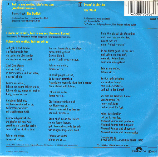 Vinyl / Konstantin Wecker - Fahr'n Ma Weida, Fahr'n Ma Zua (Weekend Runner)