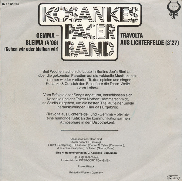 Vinyl / Kosankes Pacer Band - Travolta Aus Lichterfelde / Gemma - Bleima