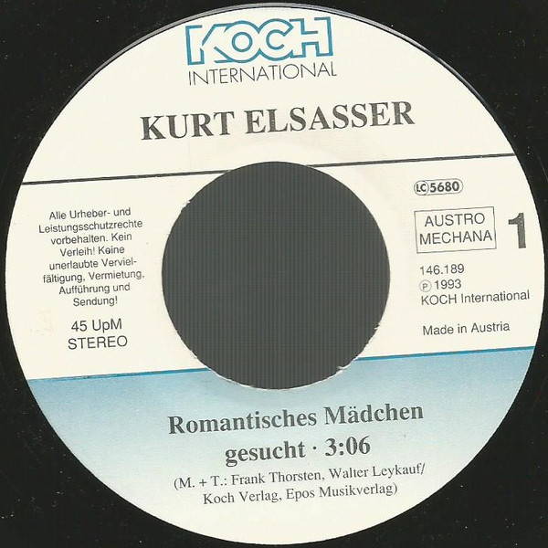 Vinyl / Kurt Elsasser - Romantisches Mädchen Gesucht