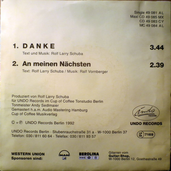 Vinyl / Larry Schuba & Western Union (3) - Danke / An Meinen Nächsten