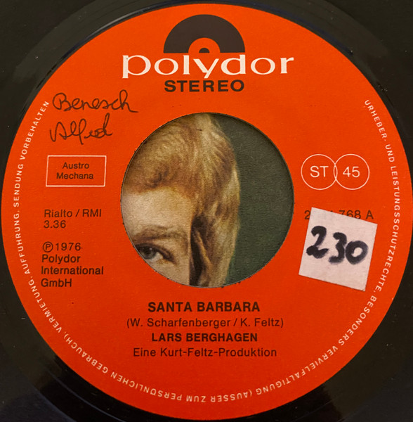 Vinyl / Lars Berghagen - Santa Barbara / Eva (...Du Mußt Ja Kein Engel Sein)