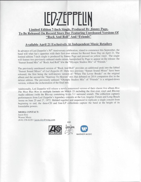 Vinyl / Led Zeppelin - Rock And Roll (Sunset Sound Mix) / Friends (Olympic Studios Mix)
