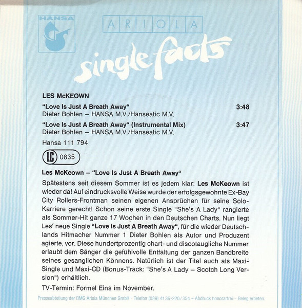 Vinyl / Les McKeown - Love Is Just A Breath Away