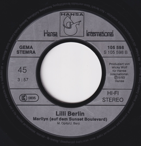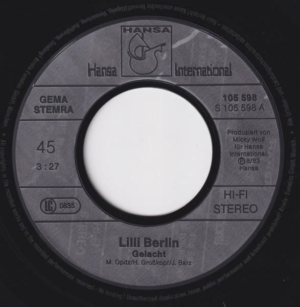 Label: Hansa - Cat#: 105 598