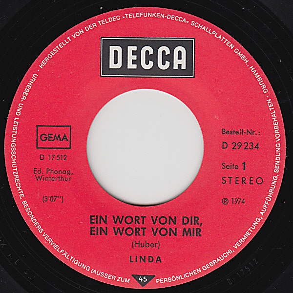 Vinyl / Linda (73) - Ein Wort von Dir, Ein Wort von Mir