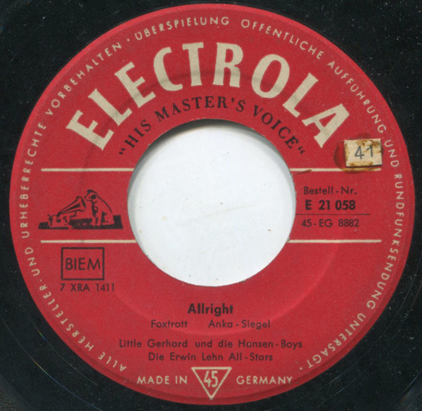 Vinyl / Little Gerhard Und Die Hansen-Boys* - Allright / Versprich Mir Nichts