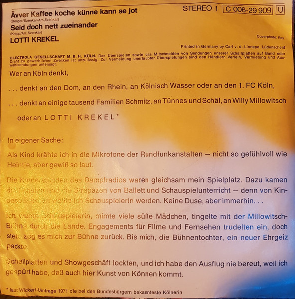 Vinyl / Lotti Krekel - Ävver Kaffee Koche Künne Kann Se Jot