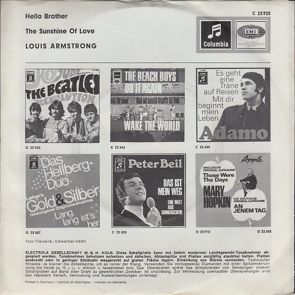 Vinyl / Louis Armstrong - Hello Brother / The Sunshine Of Love