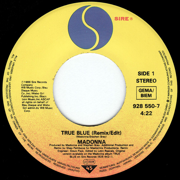 Vinyl / Madonna - True Blue (Remix/Edit)