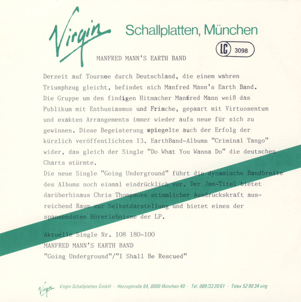 Vinyl / Manfred Mann's Earth Band With Chris Thompson - Going Underground