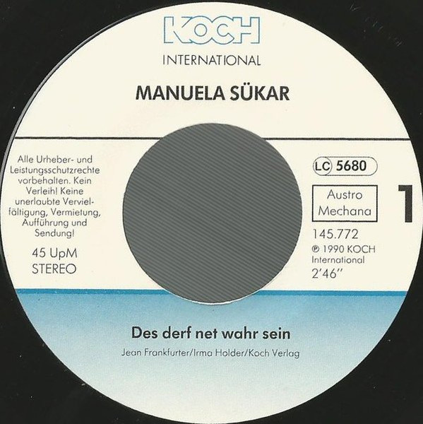 Vinyl / Manuela Sükar - Des Derf Net Wahr Sein