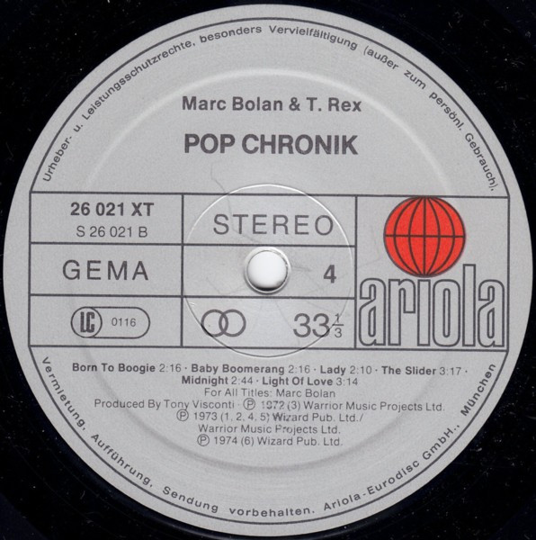 Vinyl / Marc Bolan & T. Rex - Pop Chronik