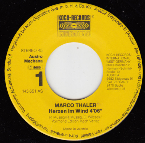 Vinyl / Marco Thaler - Herzen Im Wind