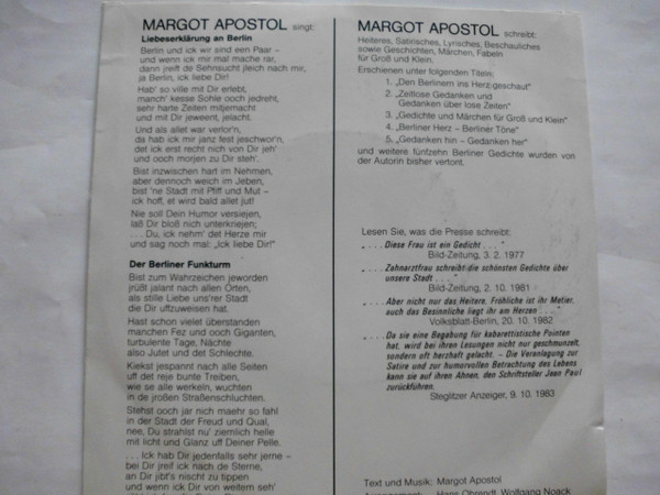 Vinyl / Margot Apostol - Liebeserklärung An Berlin / Der Berliner Funkturm