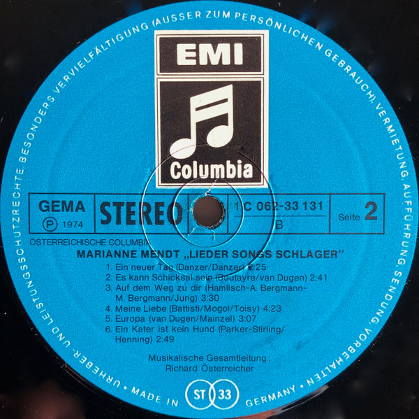 Vinyl / Marianne Mendt - Lieder Songs Schlager