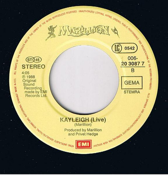 Vinyl / Marillion - Freaks (Live) / Kayleigh (Live)