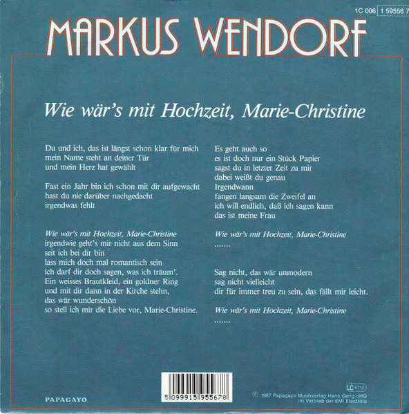 Vinyl / Markus Wendorf - Wie Wär's Mit Hochzeit, Marie-Christine