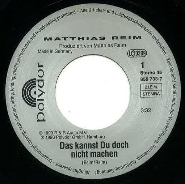 Vinyl / Matthias Reim - Das Kannst Du Doch Nicht Machen