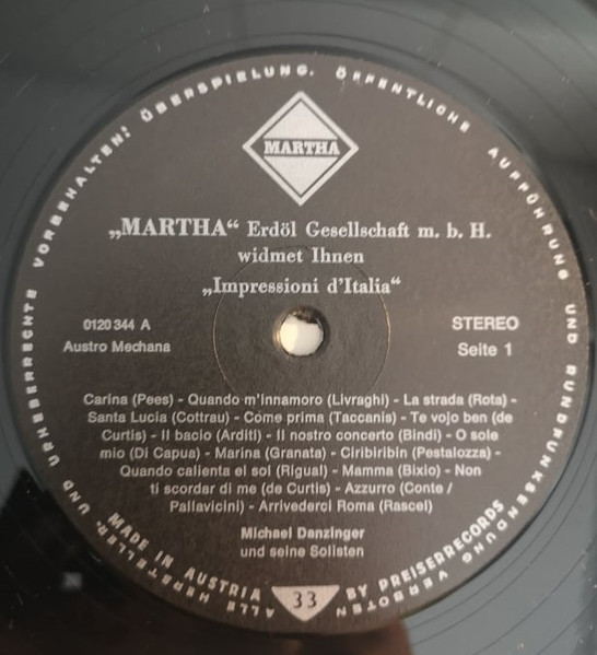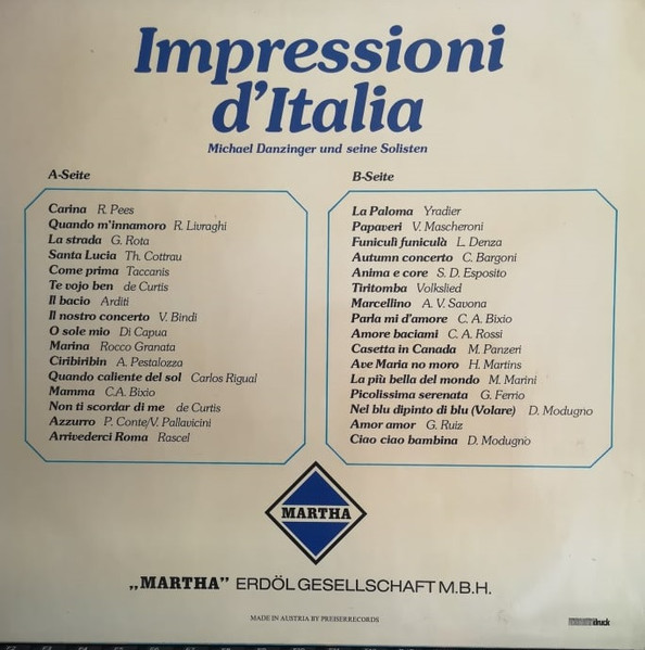 Vinyl / Michael Danzinger Und Seine Solisten - Impressioni D'Italia