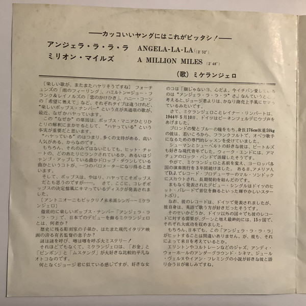 Vinyl / Michelangelo (3) = ミケランジェロ* - Angela-La-La = アンジェラ・ラ・ラ・ラ