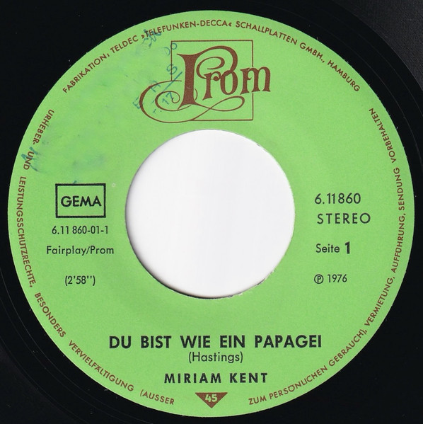 Vinyl / Miriam Kent - Du Bist Wie Ein Papagei