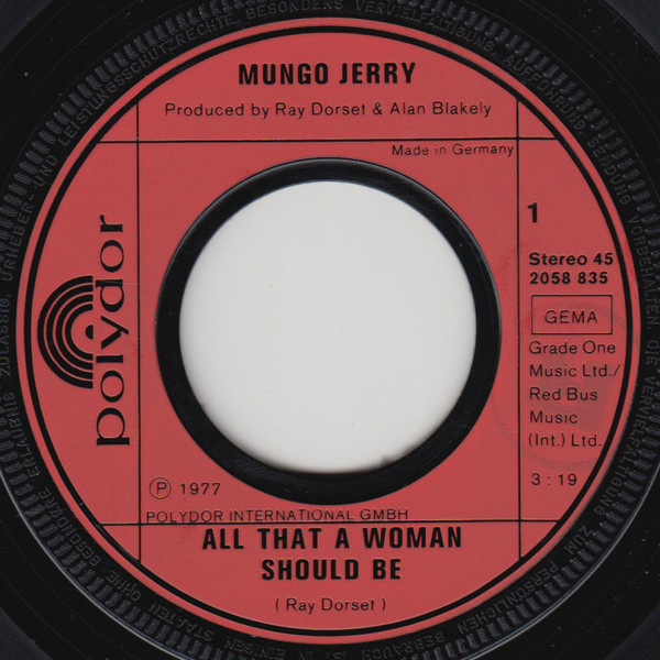 Vinyl / Mungo Jerry - All That A Woman Should Be
