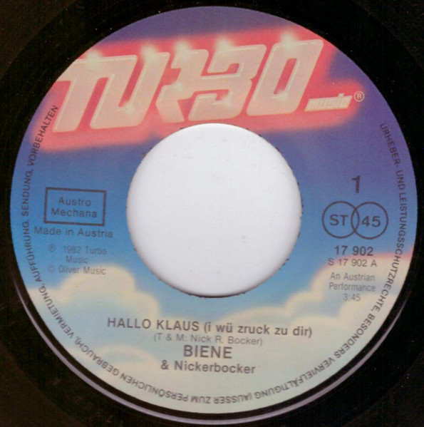 Vinyl / Nickerbocker & Biene - Hallo Klaus (I Wü Nur Zruck)