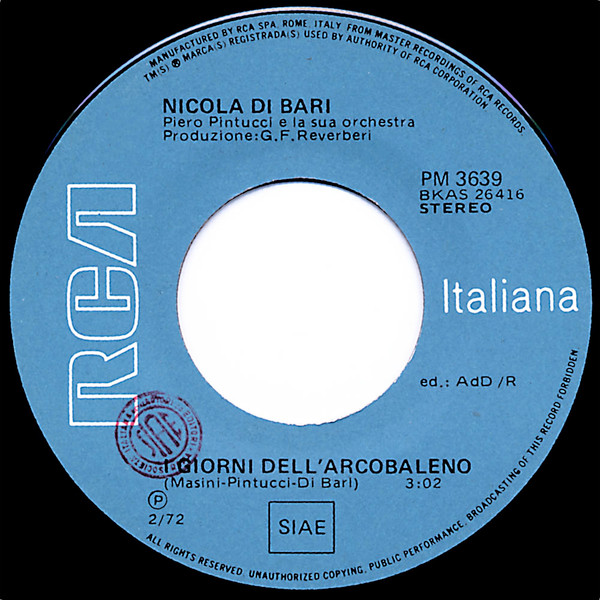 Vinyl / Nicola Di Bari - I Giorni Dell'Arcobaleno / Era Di Primavera