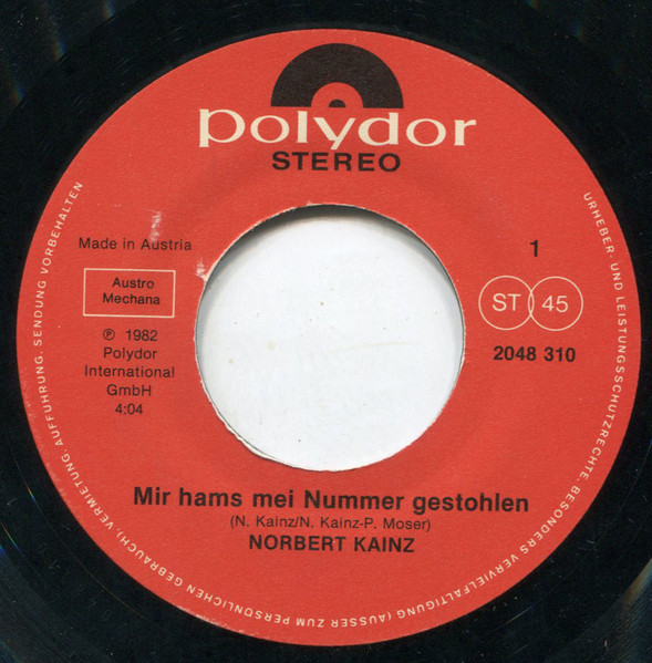 Vinyl / Norbert Kainz - Mir Hams Mei Nummer G'stohln
