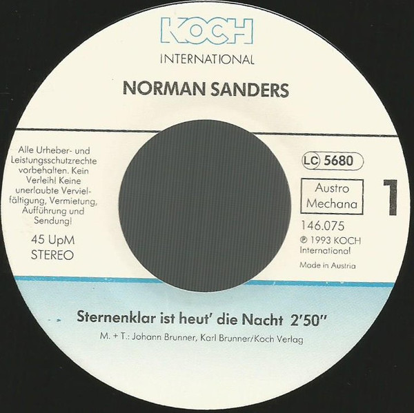 Vinyl / Norman Sanders (2) - Sternenklar Ist Heut' Die Nacht