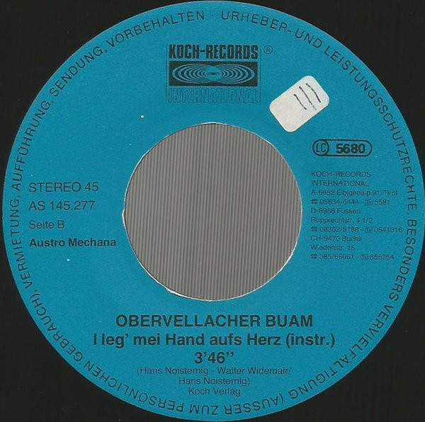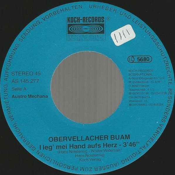 Vinyl / Obervellacher Buam - I Leg' Mei Hand Aufs Herz