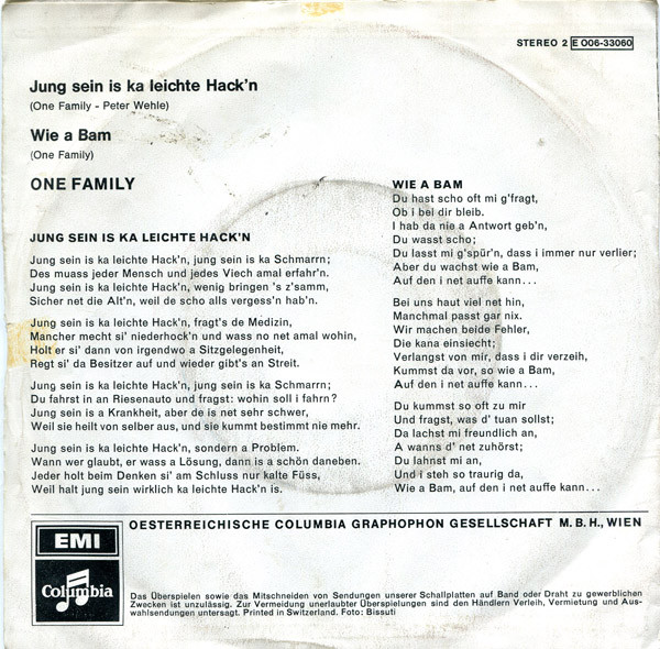 Vinyl / One Family (2) - Jung Sein Is Ka Leichte Hack'n / Wie A Bam