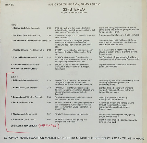 Label: Europhon Record - Cat#: ELP 513