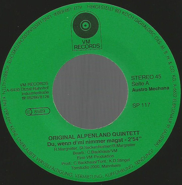 Vinyl / Orig. Alpenland Quintett - Du, Wenn D'Mi Nimmer Magst