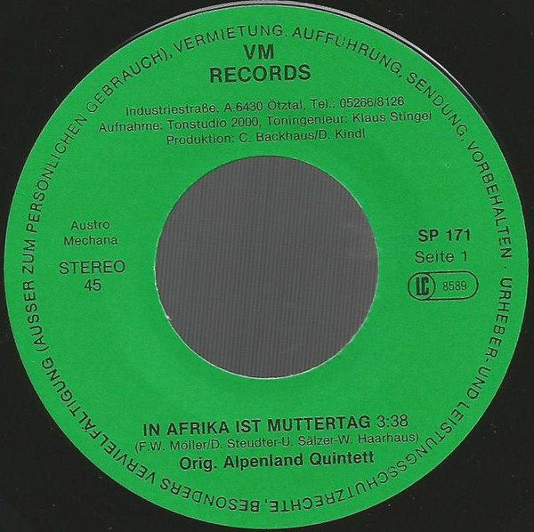 Vinyl / Orig. Alpenland Quintett - In Afrika Ist Muttertag
