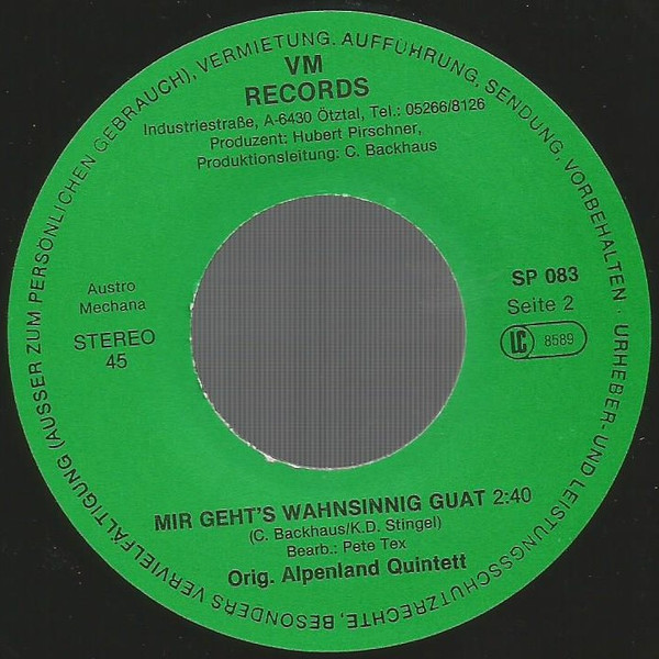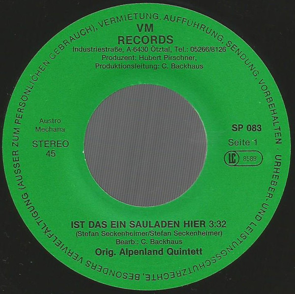 Vinyl / Orig. Alpenland Quintett - Ist Das Ein Sauladen Hier / Mir Geht's Wahnsinnig Guat