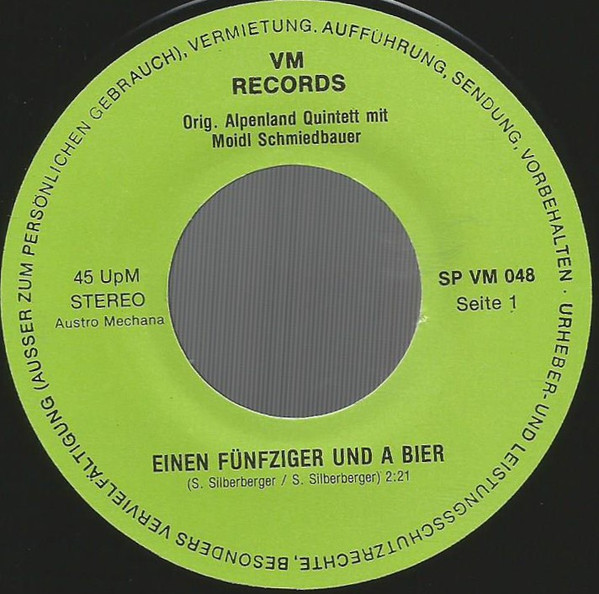 Vinyl / Orig. Alpenland Quintett Mit Moidl Schmiedbauer - Einen Fünfziger Und A Bier