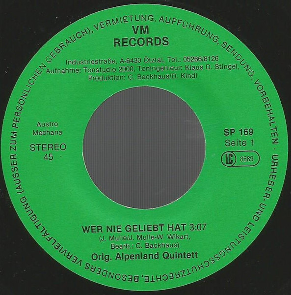 Vinyl / Orig. Alpenland Quintett - Wer Nie Geliebt Hat