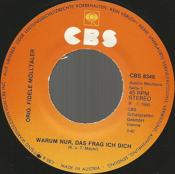 Vinyl / Orig. Fidele Mölltaler* - Warum Nur, Das Frag Ich Dich