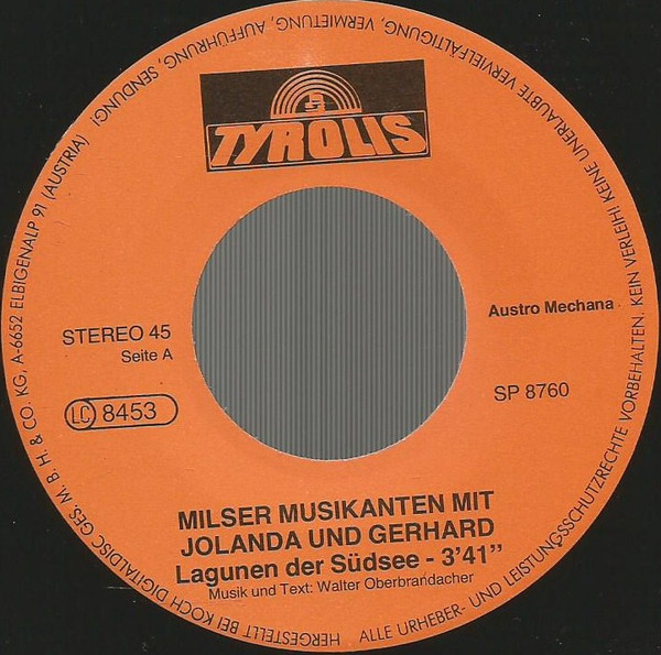 Vinyl / Orig. Milser Musikanten* Mit Jolanda Und Gerhard - Lagunen Der Südsee