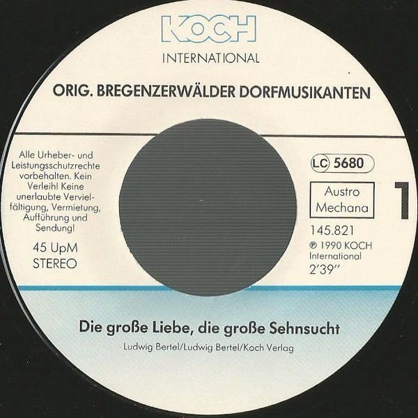 Vinyl / Original Bregenzerwälder Dorfmusikanten - Die Grosse Liebe, Die Grosse Sehnsucht