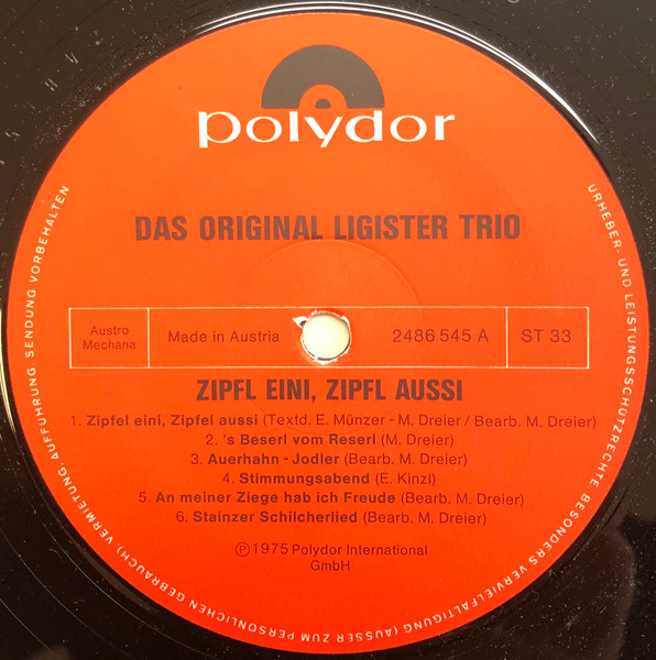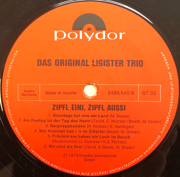 Vinyl / Original Ligister Trio - Zipfl Eini, Zipfl Aussi