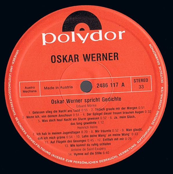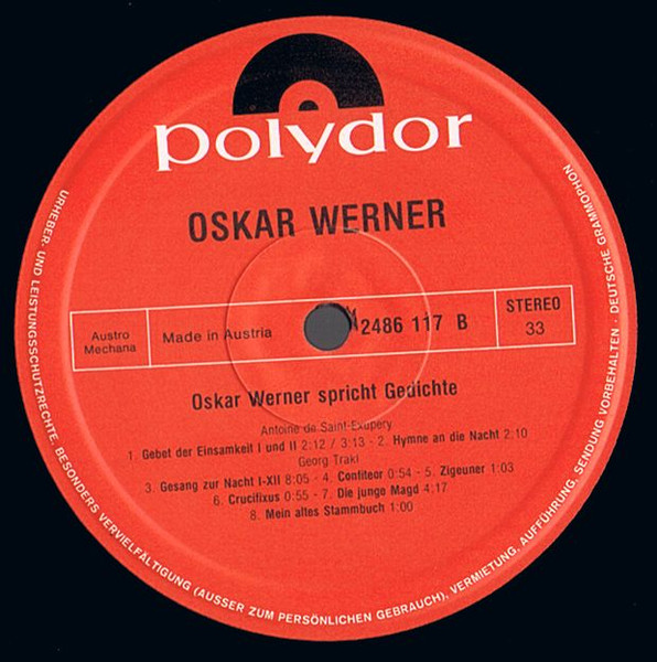 Vinyl / Oscar Werner* - Spricht Gedichte