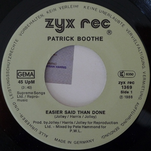 Vinyl / Patrick Boothe - Easier Said Than Done