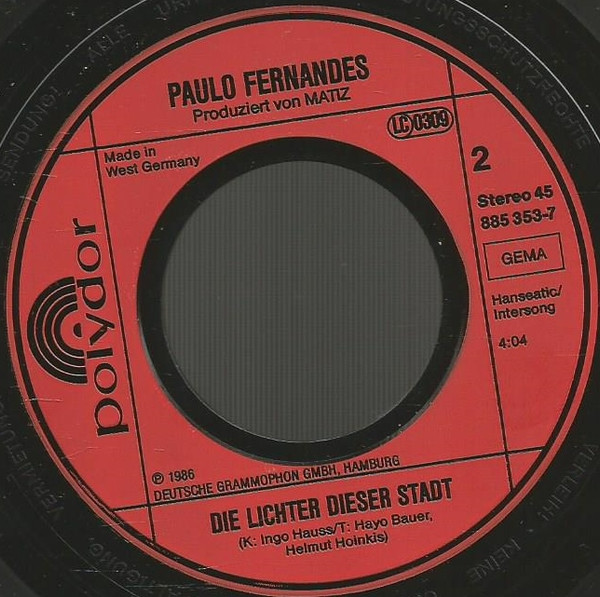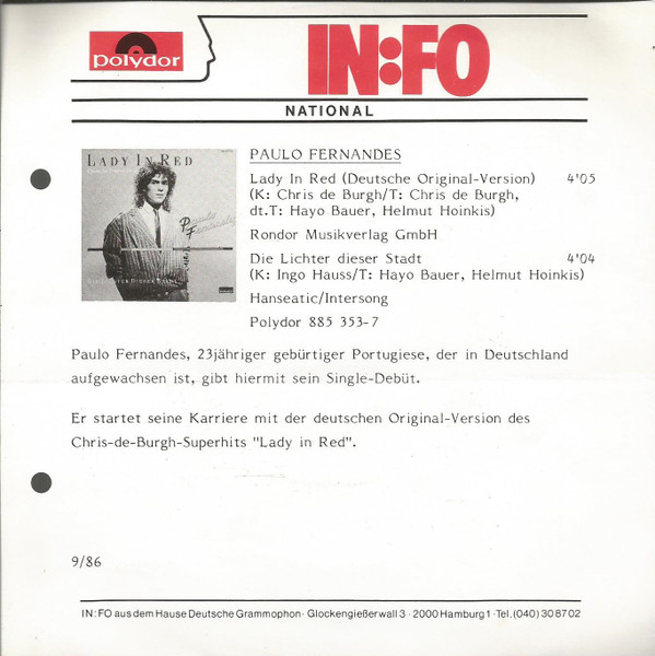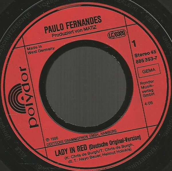 Vinyl / Paulo Fernandes (3) - Lady In Red (Deutsche Original Version)