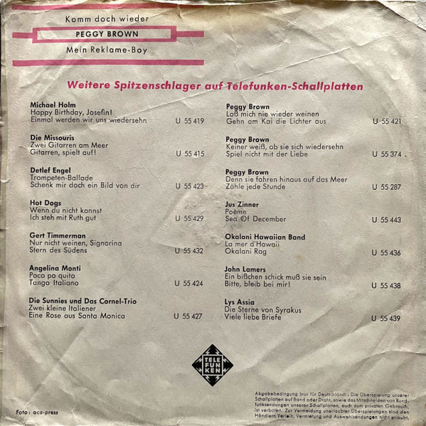 Vinyl / Peggy Brown - Komm Doch Wieder / Mein Reklame-Boy