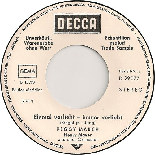 Vinyl / Peggy March - Einmal Verliebt - Immer Verliebt (Peggy's Mar(s)ch)