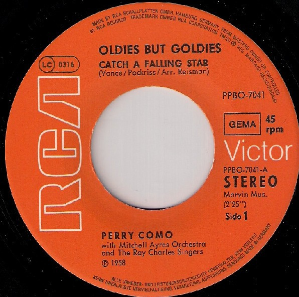 Vinyl / Perry Como - Catch A Falling Star / And I Love You So