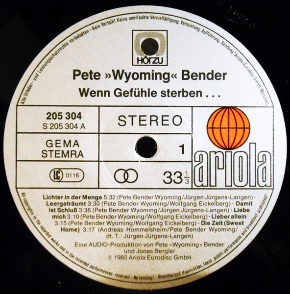 Vinyl / Pete Wyoming Bender - Wenn Gefühle Sterben ...